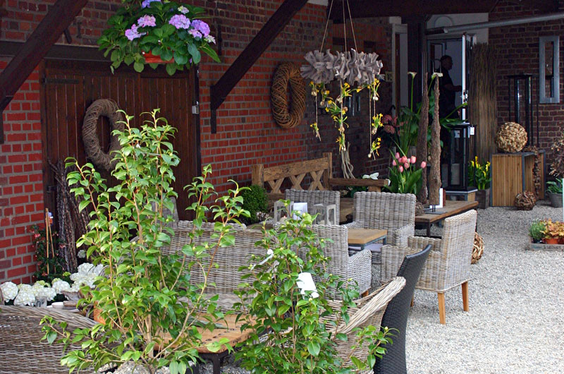 Inmitten blühender und sprießender Pflanzenvielfalt und unserem ausgesuchten Sortiment an Möbeln und Gartendekorationen ist hier der ideale Platz für ein kühles Getränk nach der Radtour, ein Stück hausgemachte Obsttorte mit Sahne am Nachmittag oder auch zum Frühstück.